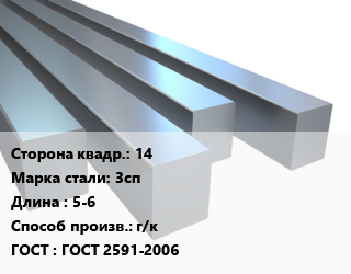 Квадрат стальной 14 Сталь: 3сп L=5-6 г/к ГОСТ 2591-2006